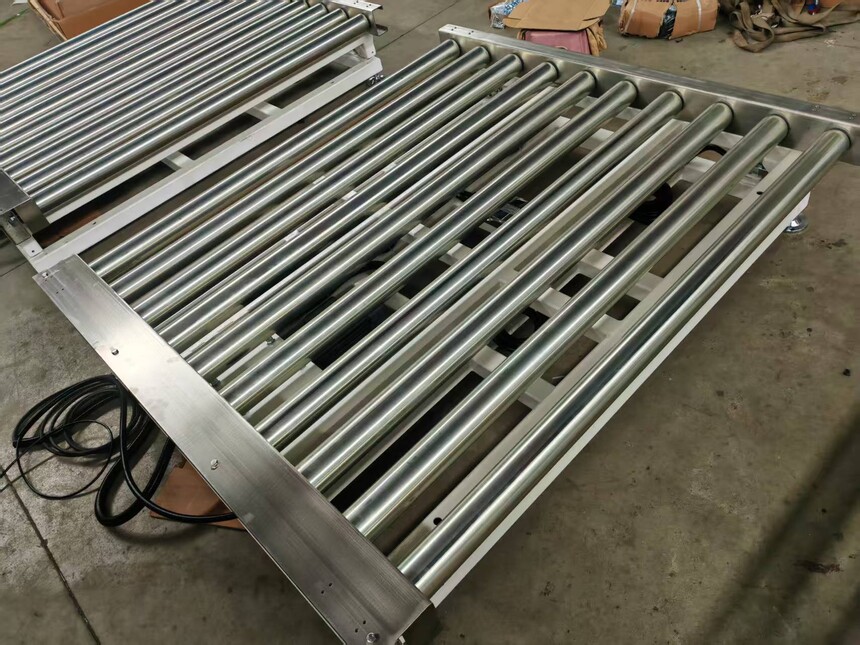 2025年6.23上海桤亚为机场订制的2台动力的重型滚筒秤如下: 1、称重最大承重2T 2、尺寸为:长1500*外宽 1700*高370 为超低型 3、采用SEW减速电机,功率1.5kw, 满足承重输送最大2T重量物货。 4、采用德马双链辊筒,¢76 碳钢镀锌 壁厚3.0 厚 5、两边侧板、盖板、关电支架、传感器的防护板,等都采用304不锈钢材质。 链条护板两端封口不露出来 6、辊筒运行速度最大0.3米/秒,支持双向运行控制。辊筒带称重功能 7、称重仪表带RS232/485通讯接口